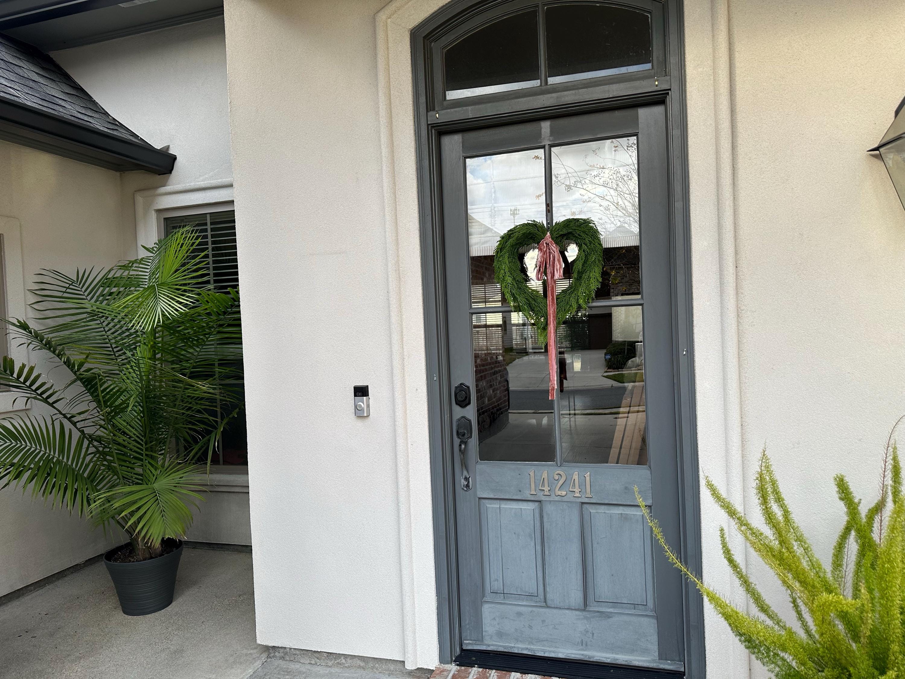 LOVE my heart wreath!! 💚 So beautiful! Love the pink velvet bow! Looks great on my door! Thanks Michelle