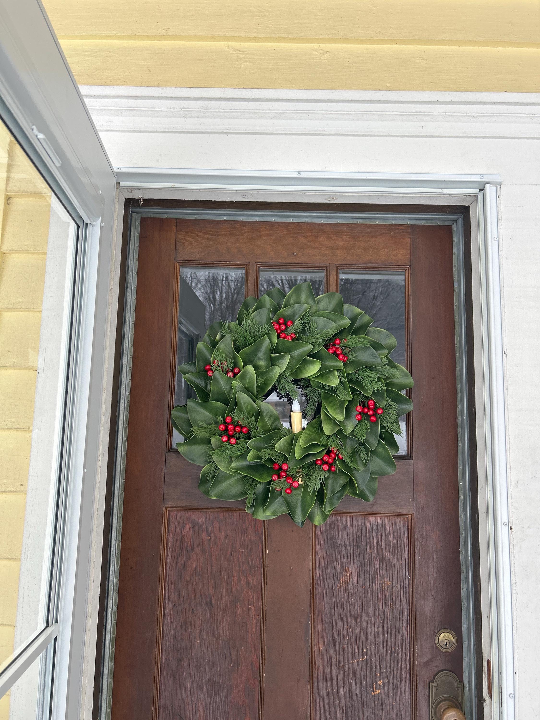 Elevate your seasonal décor with this striking Magnolia, Cedar, & Hawthorn Berry Wreath. Crafted with authentic materials, it showcases vibrant crimson hawthorn berries nestled among lush magnolia foliage and lifelike cedar branches. The sophisticated color palette and natural textures create an elegant focal point for any entryway or interior space. Perfect for personal enjoyment or as a thoughtful gift, this wreath combines botanical beauty with expert craftsmanship to bring warmth and refinement to your home throughout the season.